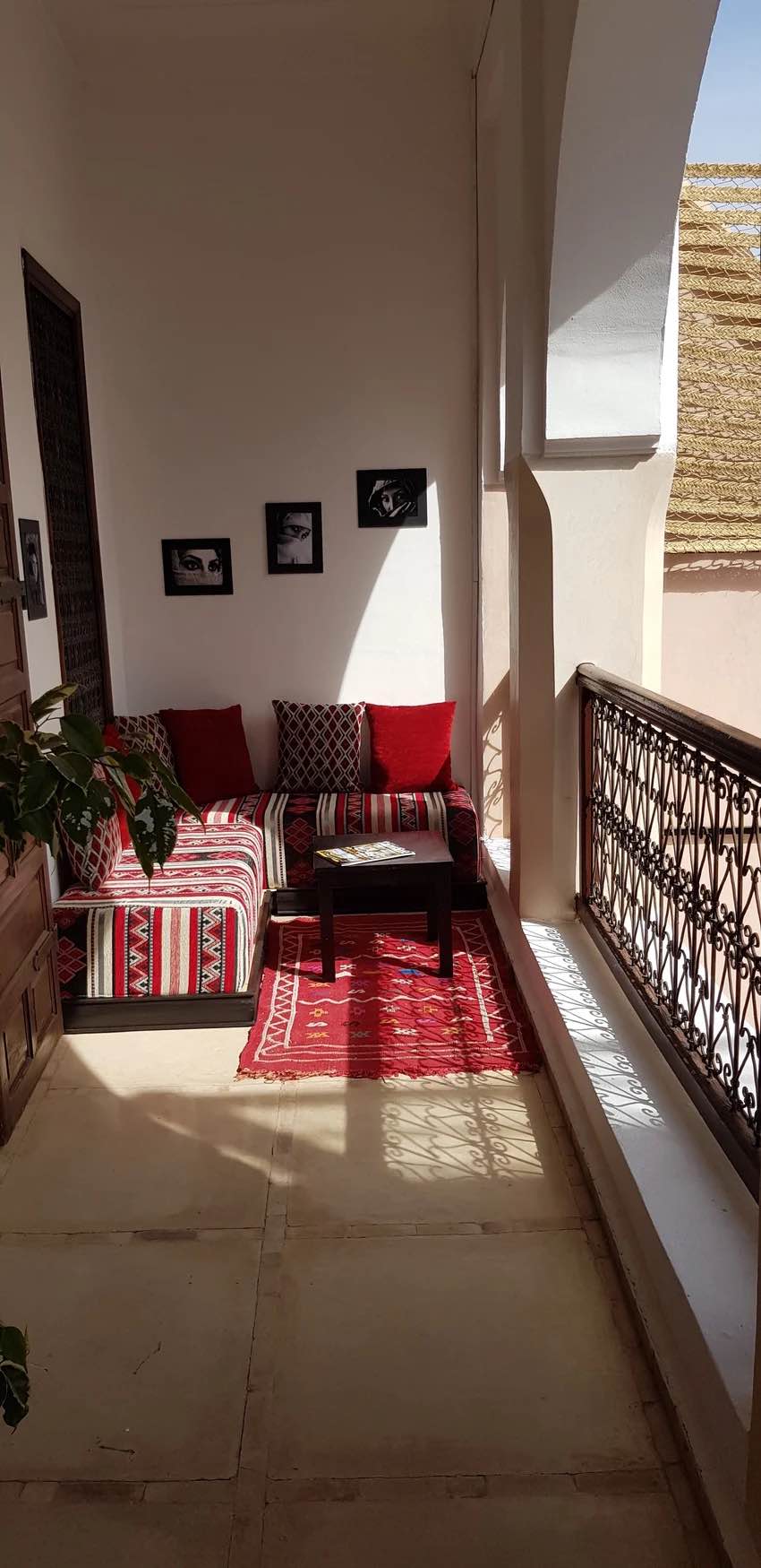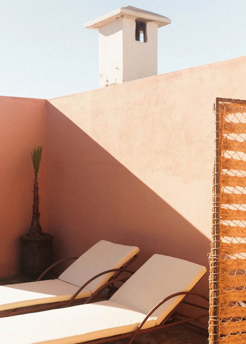 Allongé sur votre transat, les yeux perdus dans le bleu infini du ciel marocain… La terrasse solarium de Riad Safia est cet endroit privilégié où le soleil se savoure lentement, dans une intimité totale et un silence doré.