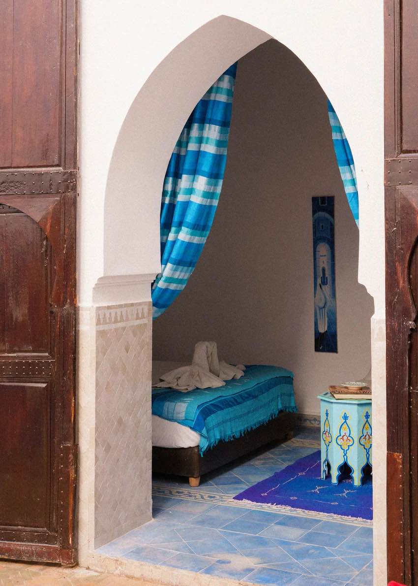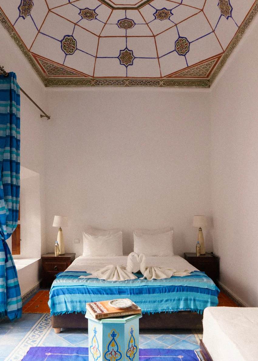 Le sidari ciselé, les motifs marrakchis qui habillent chaque mur, le lit double niché dans cette atmosphère hors du temps…